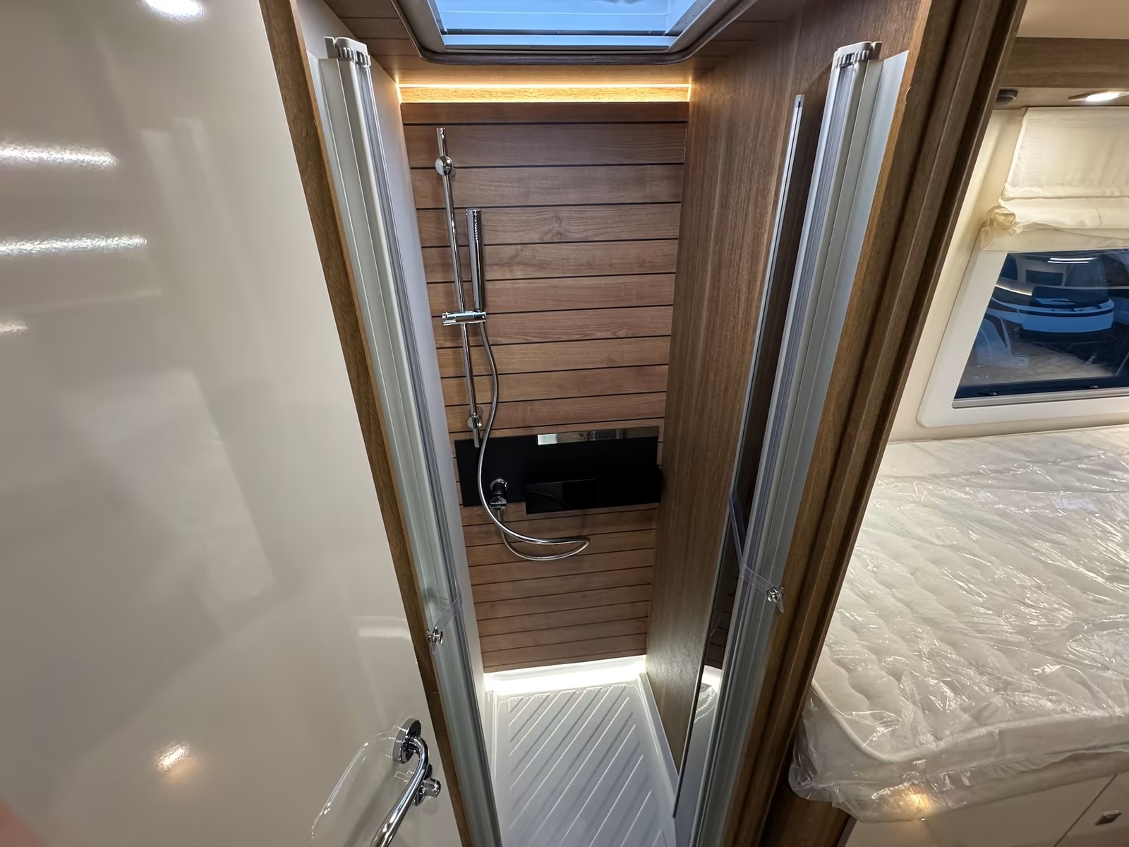 - Separate große Dusche und WC mit Staufächern